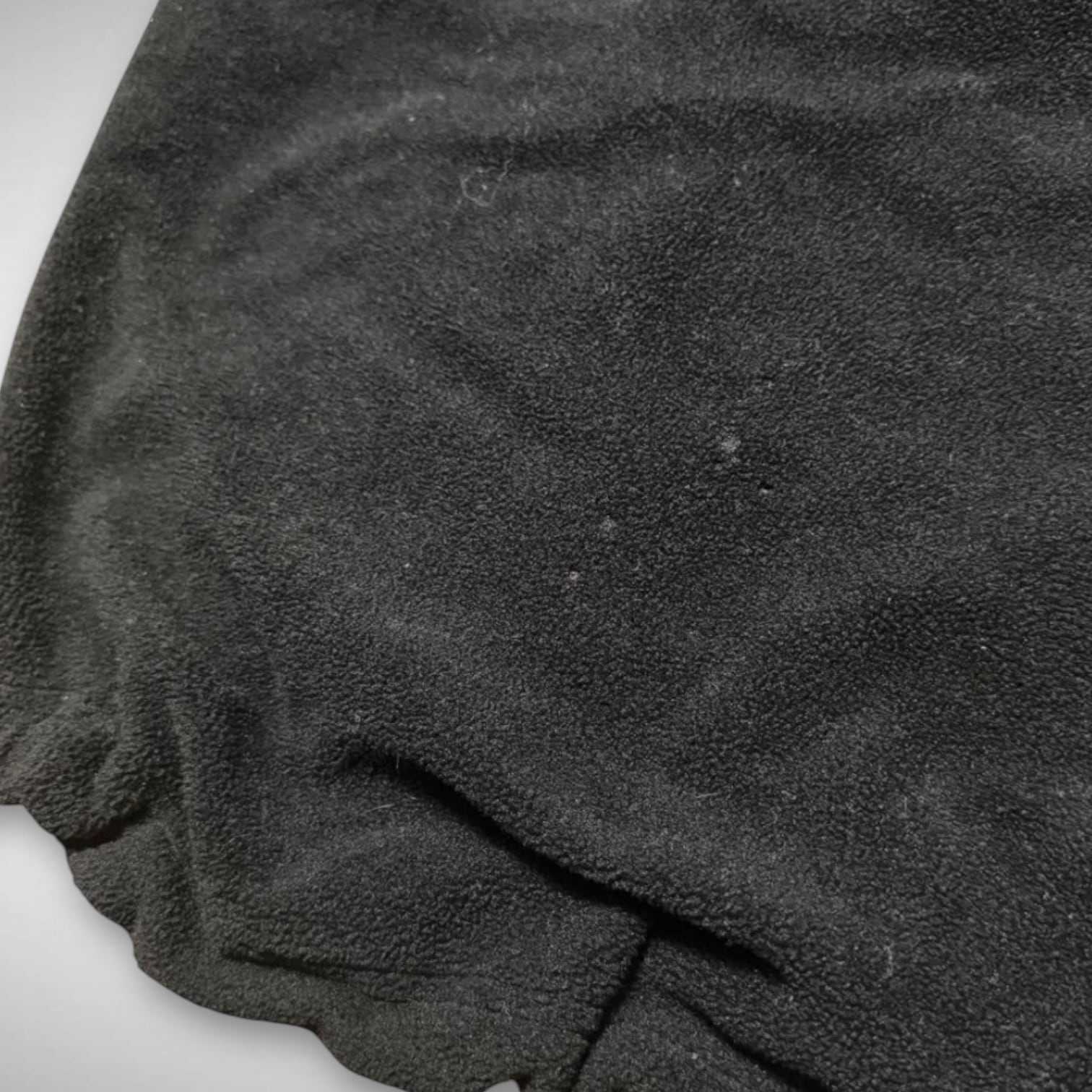表地はやわらかい毛足の短いブラックのフリース素材で、裏地はロイヤルブルーのメッシュ地になっていて、通気性もよく着心地も抜群です